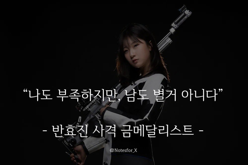 최근 마무리된 올림픽 사격 여자 공기소총 10m 국가대표인 방효진 선수님은 “나도 부족하지만 남도 별거 아니다.“라며 불안을 인정하는 효진적 사고로 그 부담감을 극복하고 금매달을 따 내실 수 있었다는 인터뷰를 봤습니다.