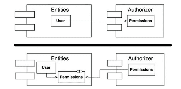 이를 통해 Entities와 Authorizer 사이의 의존성을 역전시킬 수 있고, 이를 통해 순환을 끊을 수 있다.
