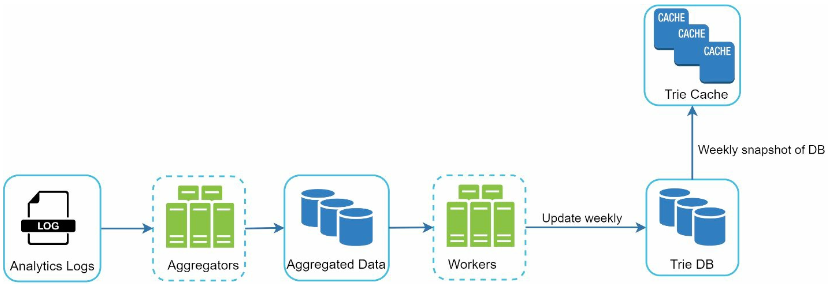 트라이를 만드는 데 쓰는 데이터는 보통 분석 서비스(Analytics)나 로깅 서비스(Logging service)를 이용하므로, 실시간으로 반영하지 않더라도 기본 구조는 바뀌지 않는다.
